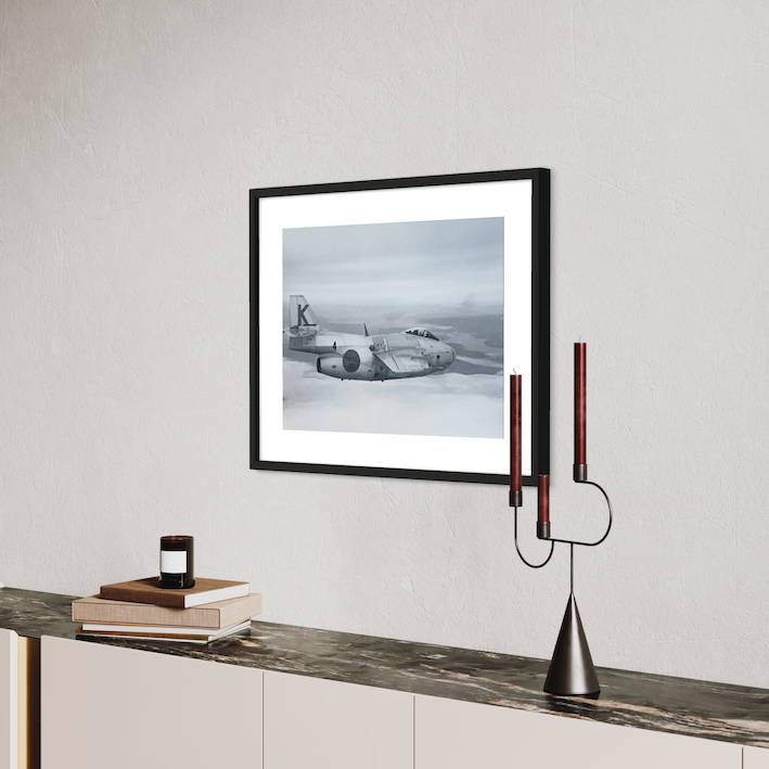 Poster med fotografi av en SAAB J29:a någonstans över ett halvmolnigt Jämtland.