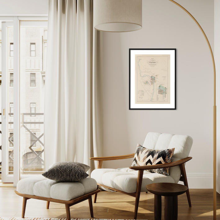 Poster med reproduktion av historisk karta över Eskilstuna från Ljunggrens klassiska atlas. Kartmästare Erik Gustaf Ljunggren fick under 1850-talet i uppgift att ta fram kartor över samtliga svenska städer. Den första kartan producerades 1853 och den sista 1861.
